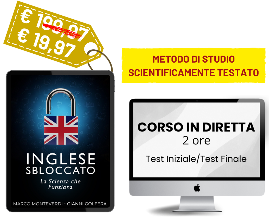 P.S. SINTESI DELL’OFFERTA: Se sei impegnato come me stai leggendo il P.S. senza aver letto il resto… Ebbene ottieni un Manuale e un corso dal vivo dal valore di 297 a soli 19,99. Impari l’unico metodo scientificamente testato per sbloccare il tuo inglese e imparare a parlarlo in modo fluente in sole 12 settimane