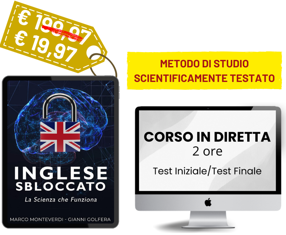 Clicca il pulsante qui sotto, ottieni subito la tua copia e l’accesso al Corso Online di 2 ore dove avrai la certezza di migliorare il tuo inglese anche se pensi di essere negato.