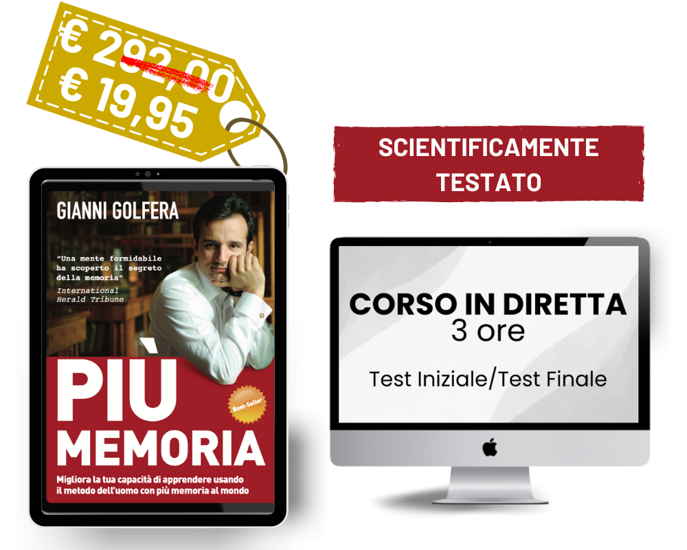 Bonus esclusivo: Corso online di 3 ore in cui il Prof. Gianni Golfera ti guida passo dopo passo a evitare gli errori che commetti quando studi e ad acquisire un metodo pratico e scientificamente testato per apprendere e ricordare tutto quello che ti serve.